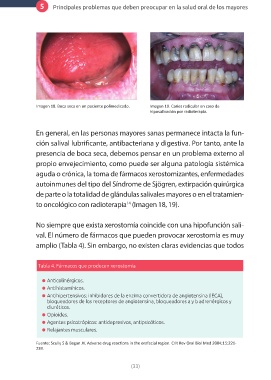 Imagen 18. Boca seca en un paciente polimedicado. Imagen 19. Caries radicular en caso de