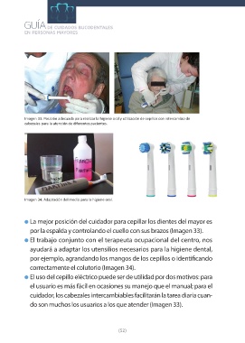 Imagen 33. Posición adecuada para realizar la higiene oral y utilización de cepillos con intercambio de